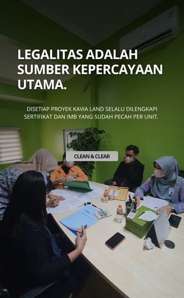 Legal & Licensing Assistance: Legalitas adalah sumber kepercayaan utama. Disetiap proyek Kavia Land selalu dilengkapi sertifikat dan IMB yang sudah pecah per unit sebelum dipasarkan sehingga proses balik nama dan sertifikasi semua tahap pembelian berjalan aman dan lancar.